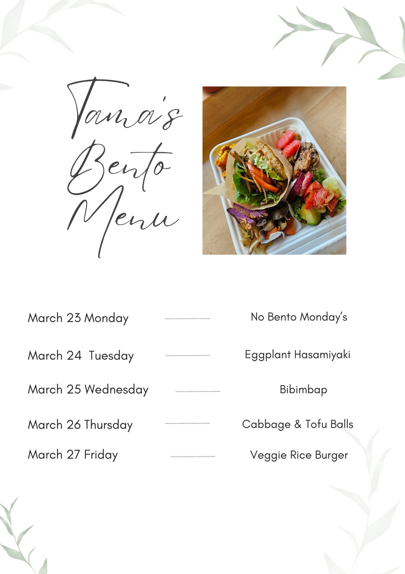 Tama’s Daily Menu